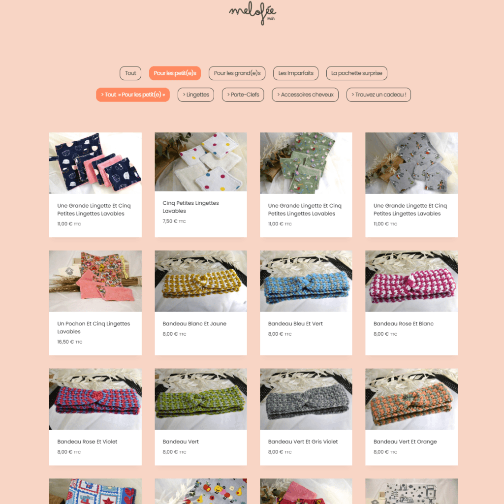 Mélofée est une boutique artisanale qui souhaite proposer ses créations en vente, sans faire aucune publicité. Il a donc été décidé de ne faire qu’une boutique en ligne, sans optimisation SEO.